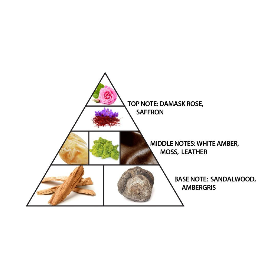 Haramain Oud Rose Pure Musk is a blend that begins with the velvet touch of Damask rose and the fiery scent of saffron. On the skin, the heart unfolds into white amber, moss, and supple leather, wrapping the wearer in warmth and depth. As it settles, creamy sandalwood and ambergris leave a trail so opulent and sensual. It calms your soul like the calming presence of the morning fog, welcoming a new day, and captures oud in its most majestic form.